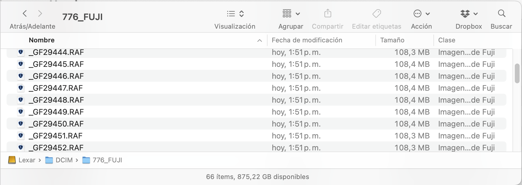 (*) Las cámaras GFX que pueden grabar fotos en disco SSD son la GFX100S mark 2, la GFX100 mark 2 y la GFX100RF.